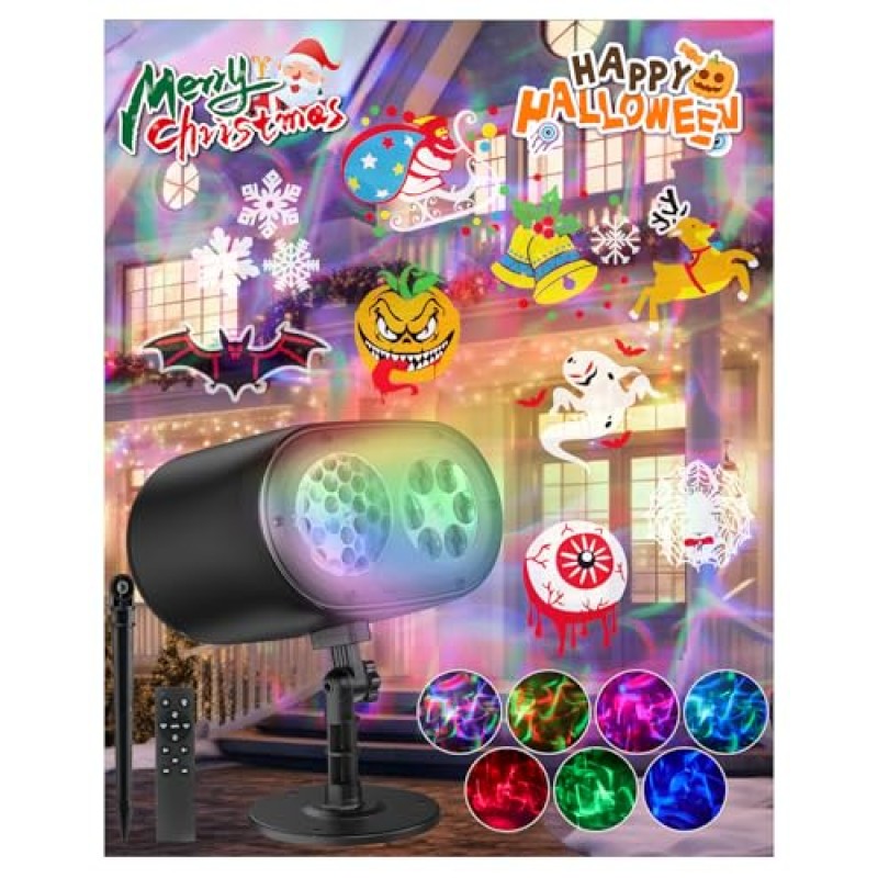 - Double projection lens design featuring 24 Christmas, 24 Halloween, and 7 aurora light effects for versatile seasonal ambience.