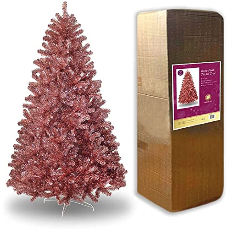 7ft Artificial Christmas Tree with Rose Gold Tinsel Tips