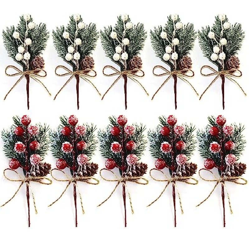- Features realistic bright red berries, evergreen pine needles, and small pine cones with snowy accents.