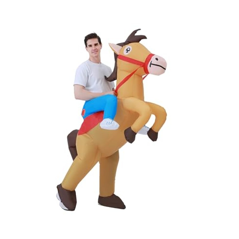 The built-in powerful fan inflates the costume within 90 seconds, allowing you to quickly transform into a jolly horse-riding cowboy or cowgirl. Its durable design holds its shape perfectly, so you can dance around the Christmas tree or join in the New Year’s Eve festivities with ease. Sized to fit most adults, it lets you walk, jump, and sit comfortably, making it a fantastic, unforgettable outfit for costume contests, family parties, or even playful festive photo sessions.