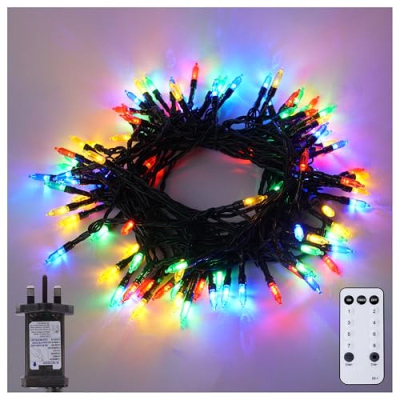 - 10-metre length with RGB multi-colour LED lights in red, yellow, blue, and green for vibrant festive displays.
