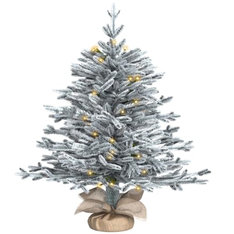 Add a festive touch to even the smallest of spaces with our Luxury 3ft pre-lit faux snowy Christmas tree. Featuring snow-dusted green branches and sat nestled in a hessian-style bag, this thoughtfully designed piece has a compact base, making it the perfect fit for tabletops, sideboards, and entryways. The warm white plug-in LED lights are pre-fitted throughout, casting a soft, ambient glow that brings instant warmth and cheer. Ideal for adding festive flair to any corner of your home.