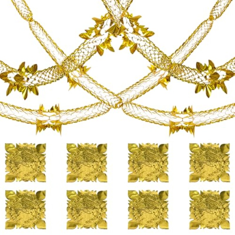 - Set of 8 gold foil garlands, each 2.7 metres long – ample length to adorn your entire festive space.