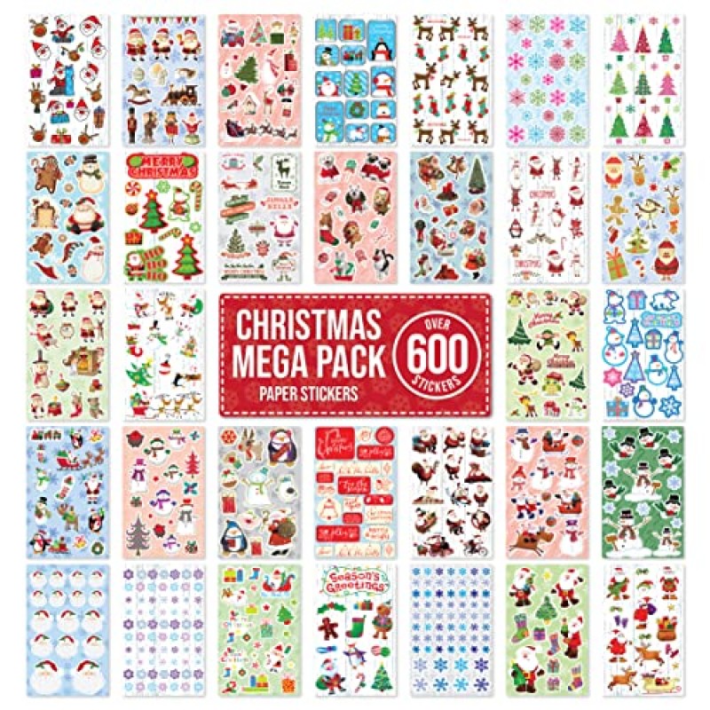Christmas Sticker Pack with Over 600 Festive Stickers, 32 Sheets