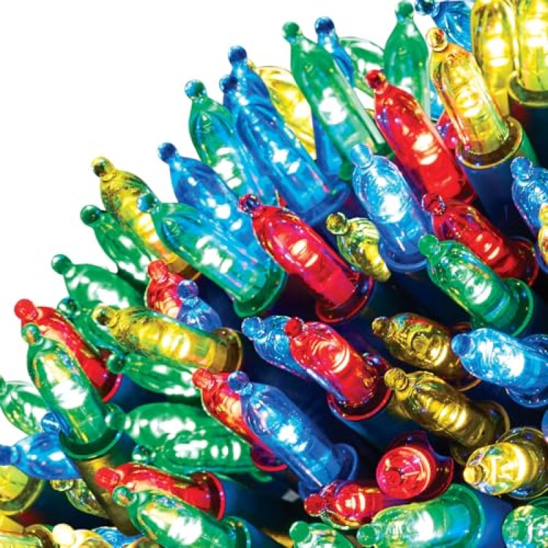 - 200 ultra-bright multicoloured LED fairy lights providing vibrant reds, blues, yellows, and greens.