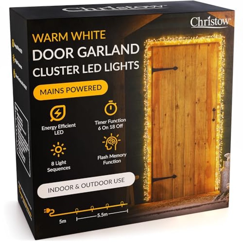 Christow LED Christmas Cluster Door Garland with Timer and 8 Modes, 5.5m