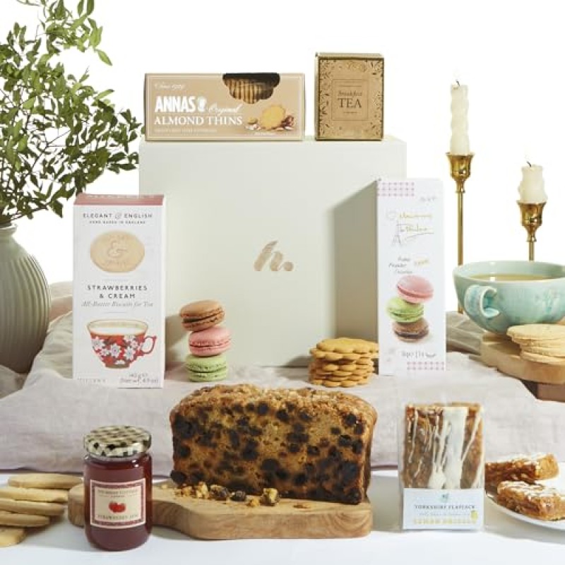 - Includes a selection of sweet indulgences like Macaroons de Pauline, Strawberry Preserve, and New English Tea.