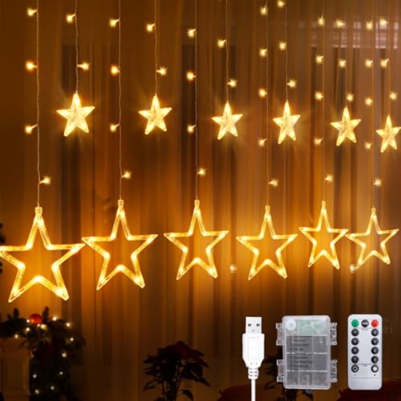 Designed with versatility in mind, the lights offer eight charming flashing modes, including gentle waves and steady glow, easily controlled via a handy remote or a button on the waterproof battery box. Whether hung over windows, draped on a Christmas tree, or illuminating a party venue, their shimmering presence enhances every special moment. The option to power them by USB or battery and their IP65 waterproof rating mean these stars sparkle steadily through brisk nights and wintry weather alike.