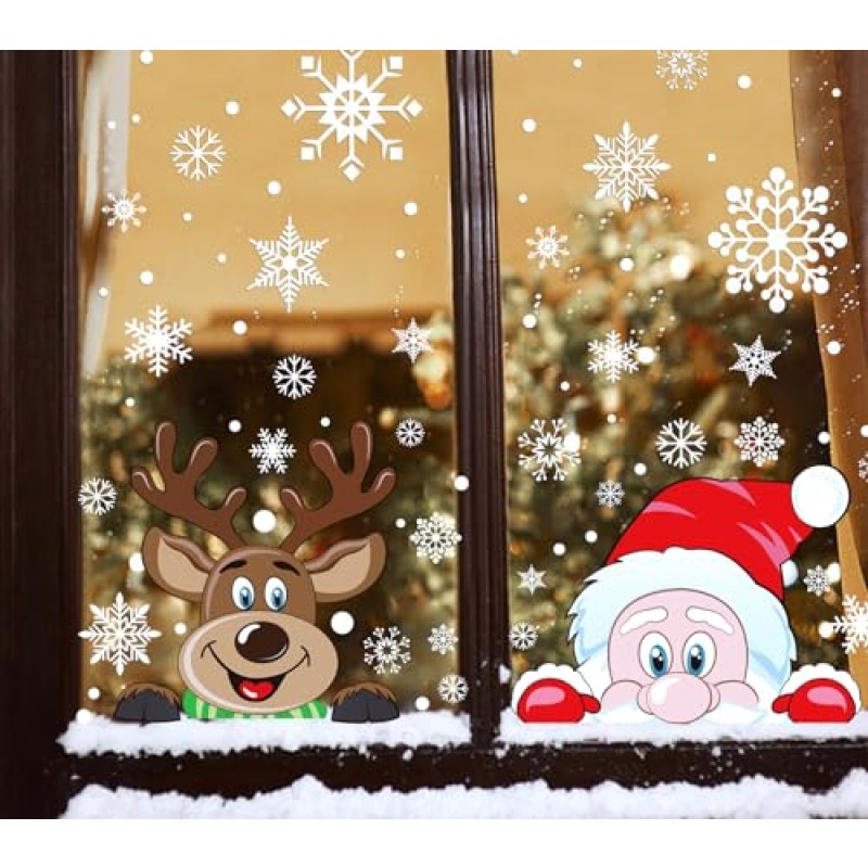 Bring a delightful touch of festive cheer to your home with this charming set of FINGOOO Christmas window stickers. Featuring a playful peeping Santa, a joyful Rudolph, and an assortment of snowflakes in various sizes and shapes, these decals create a whimsical winter scene perfect for brightening up your windows during the Christmas season.
