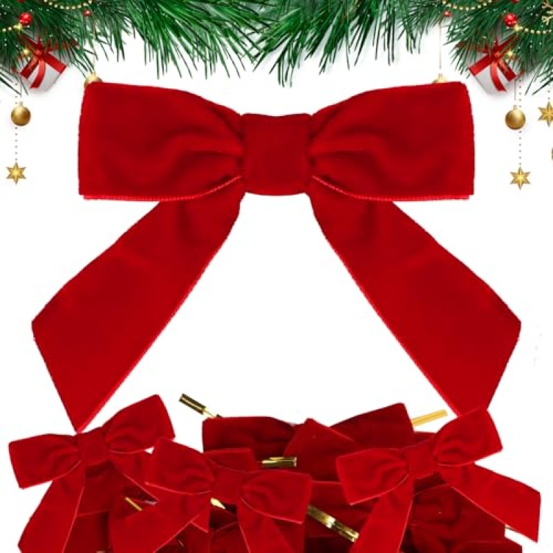 - Includes 30 red velvet Christmas bows, each approximately 8cm by 8cm in size, ideal for noticeable yet elegant decoration.