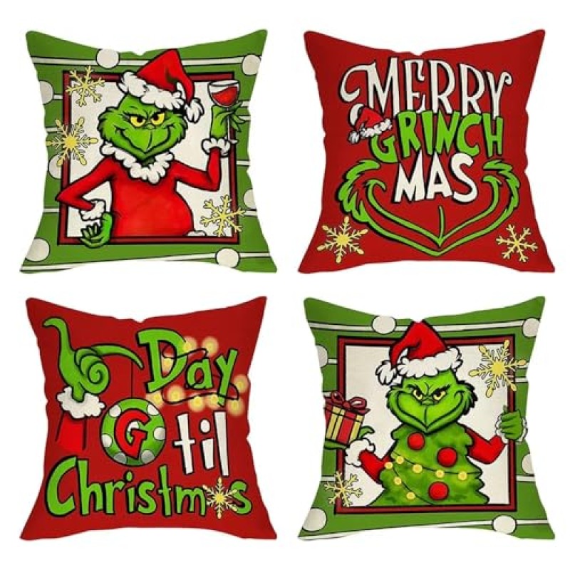 Grinch Christmas Throw Pillow Covers, Set of 4