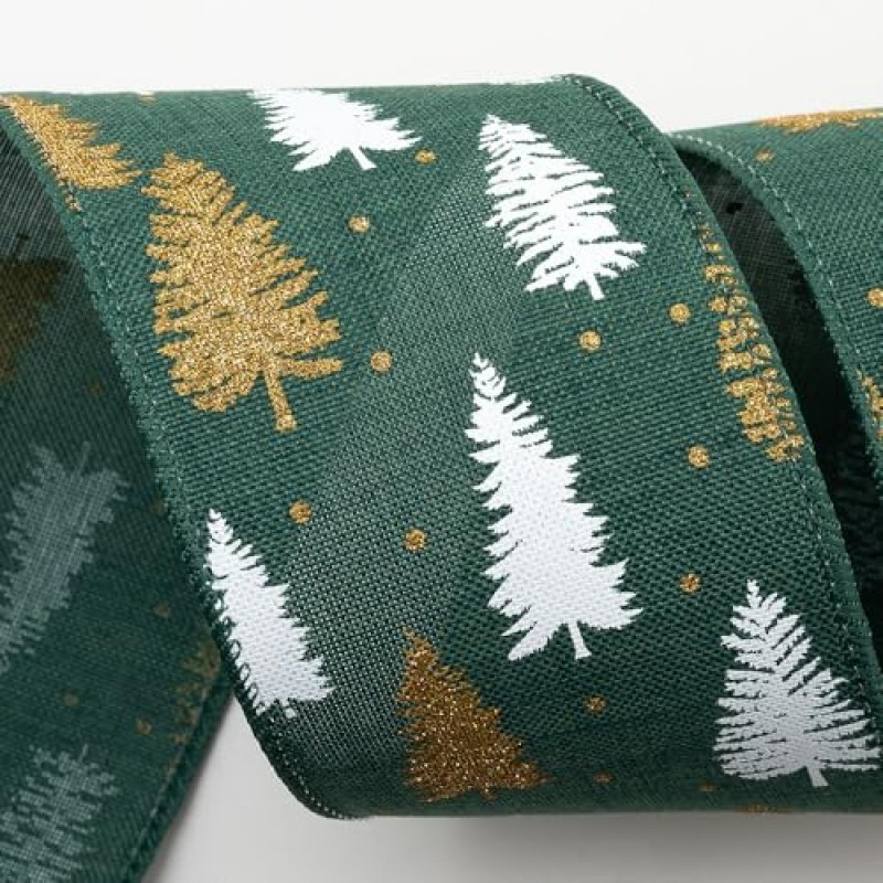 Wrap your festive celebrations in a touch of sparkle with this luxurious Italian Options Glitter Christmas Tree Ribbon. The rich green linen base evokes the deep colours of winter woods, while the elegant white and gold glitter Christmas tree motifs bring a shimmering, magical charm reminiscent of a snowy Christmas morning. At 63mm wide with a wired edge, this ribbon is crafted not only for beauty but for versatility, allowing you to shape perfect bows that hold their festive flourish throughout holiday gatherings.