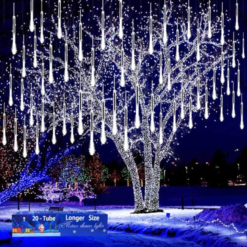 Kwaiffeo 20-Tube Meteor Shower Icicle Christmas Lights for Outdoor Use