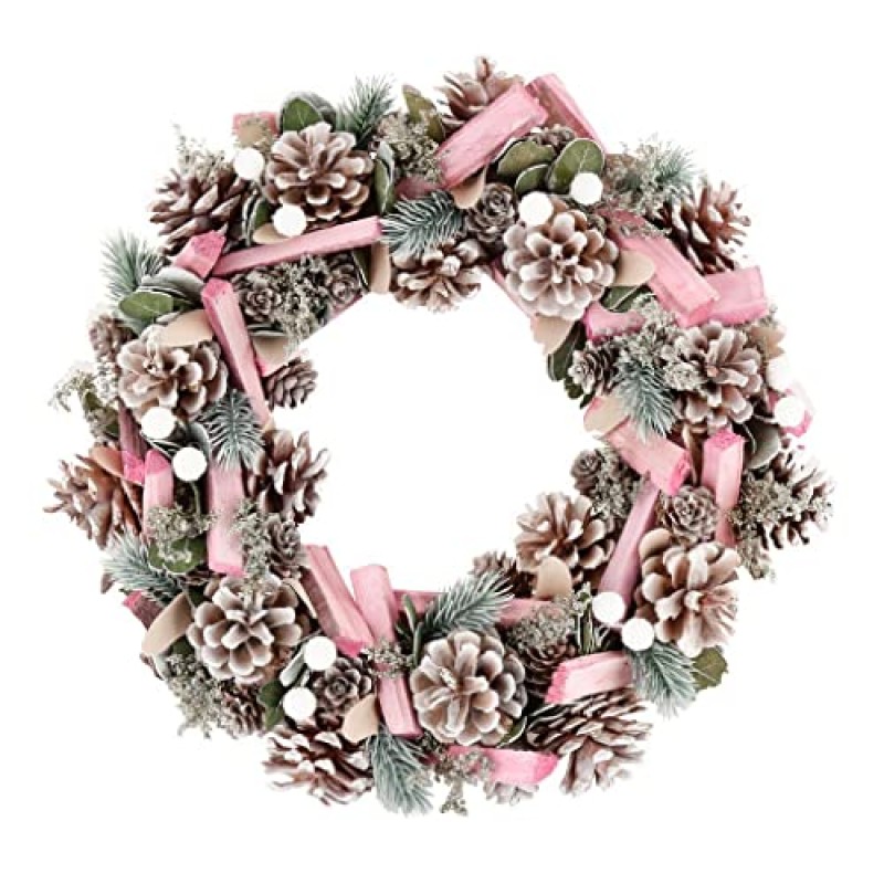 - Adorned with pastel pink driftwood and artificial berries for a gentle pop of seasonal colour.