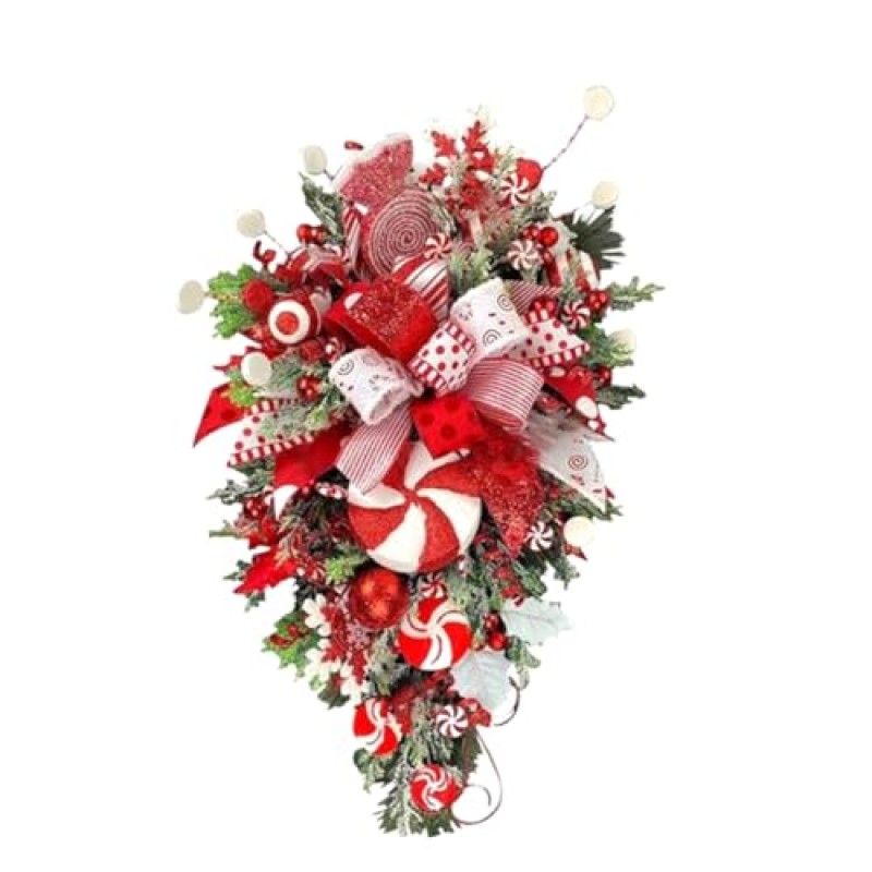 LAUGHERER Handmade Christmas Candy Cane Wreath