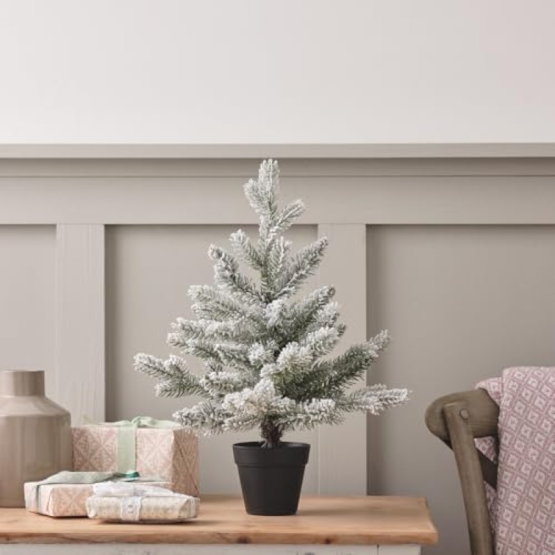 - ELEGANT WINTER DESIGN: Standing at 45cm high, this Snowy Mini Christmas Tree brings a calm, wintry touch to your festive decor.