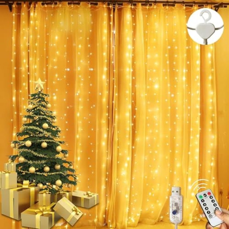 LITYBY USB 300 LED Curtain Fairy Lights with Remote