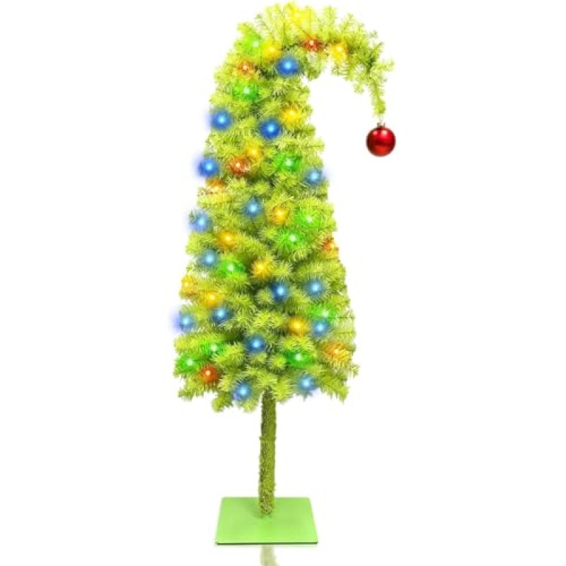 Longzhuo 1.5m Crooked Neck Artificial Christmas Tree with LED Lights
