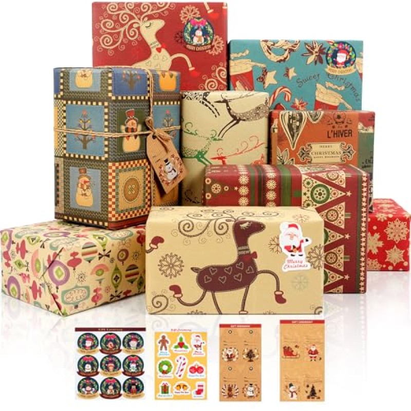 MAMUNU Christmas Wrapping Paper Set with Tags and Stickers