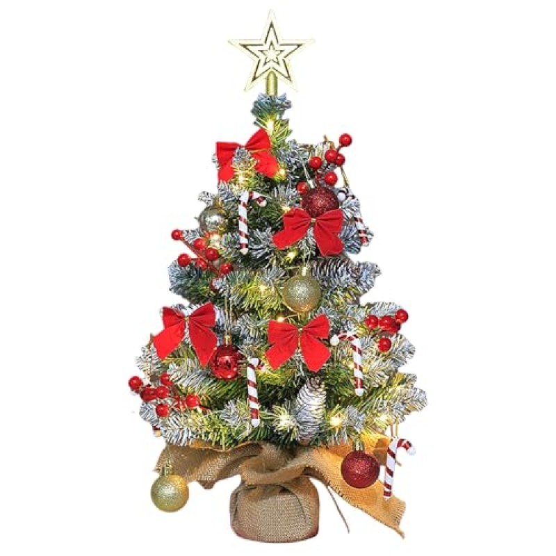 Mini Artificial Christmas Tree with Lights and Decorations, 60cm