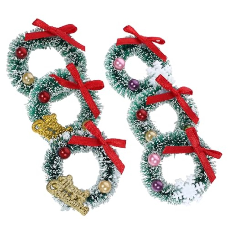 Miniature Christmas Wreaths Sisal Silk Dollhouse Decorations, Set of 6