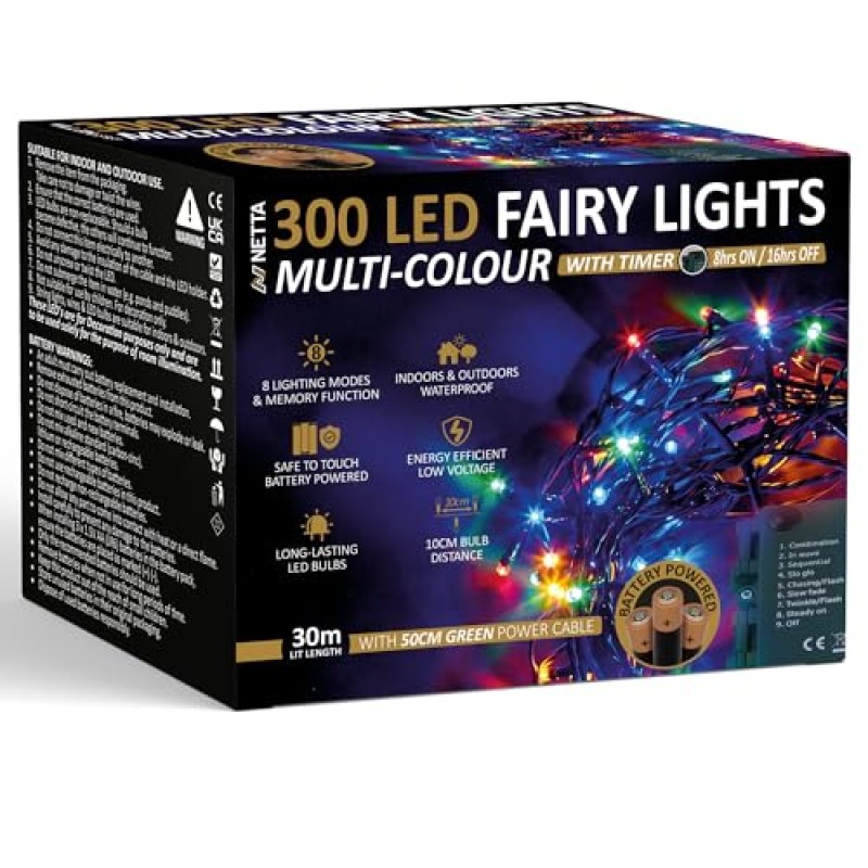 NETTA 300 LED Multi-Coloured Battery Fairy Lights with Timer