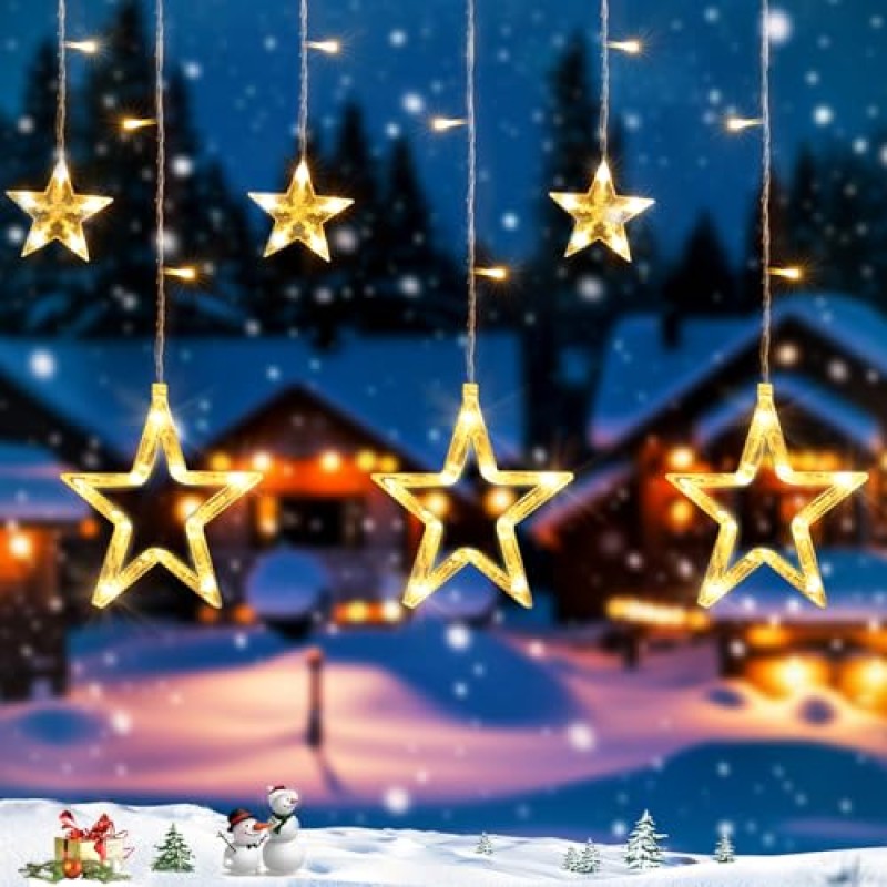 Quntis 138LED Warm White Christmas Star Curtain Lights