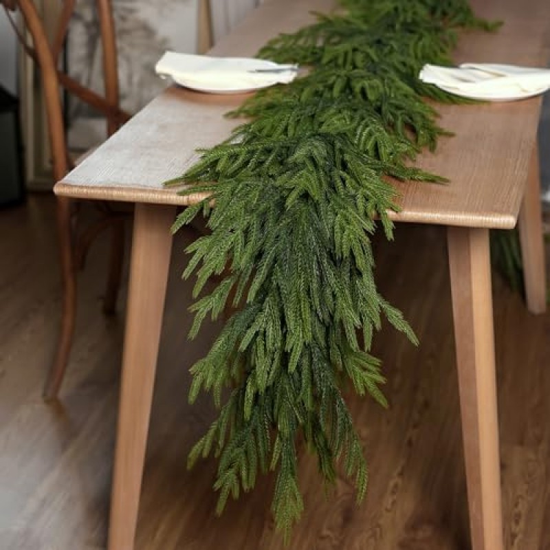 Transform your home into a winter wonderland with this Real Touch Norfolk Pine Artificial Christmas Garland, stretching a generous 9 feet. Crafted to mimic the lush, full appearance of real Norfolk pine, it invites the fresh, festive spirit right into your living room. The garland's high-quality plastic pine needles offer a soft, tactile experience that feels wonderfully authentic, making it perfect for draping over mantels, staircases, doorways, or windows.