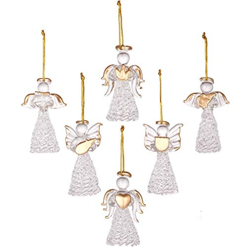 - Set includes 12 clear glass angels in 6 unique designs, adding delicate variety to your decoration.