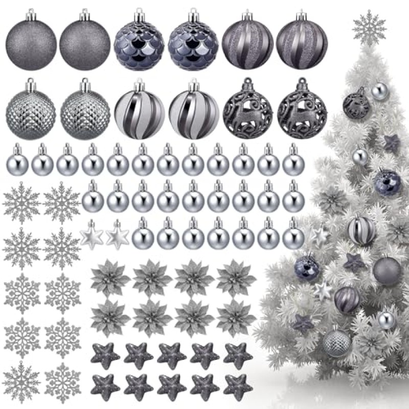 Sinmoe Shatterproof Christmas Tree Decoration Set in Iron Gray and Silver