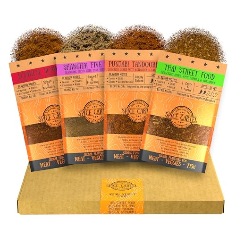 Bring the vibrant flavours of Asian street food to your festive kitchen with this exquisite gift set from Spice Cartel. Each carefully curated pouch offers a journey through some of Asia's most beloved culinary traditions, blending authentic herbs and spices to elevate your Christmas cooking and celebrations.