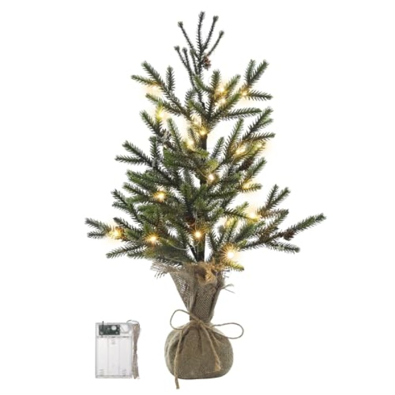 Bring the festive spirit into your home with the Wenhuidr Lit Artificial Christmas Tree. Standing at 58cm tall, this mini tree is a charming addition to your Christmas decor. Its realistic design features lifelike pine needles, natural pinecones, and a rustic burlap base, evoking the traditional Christmas feel.