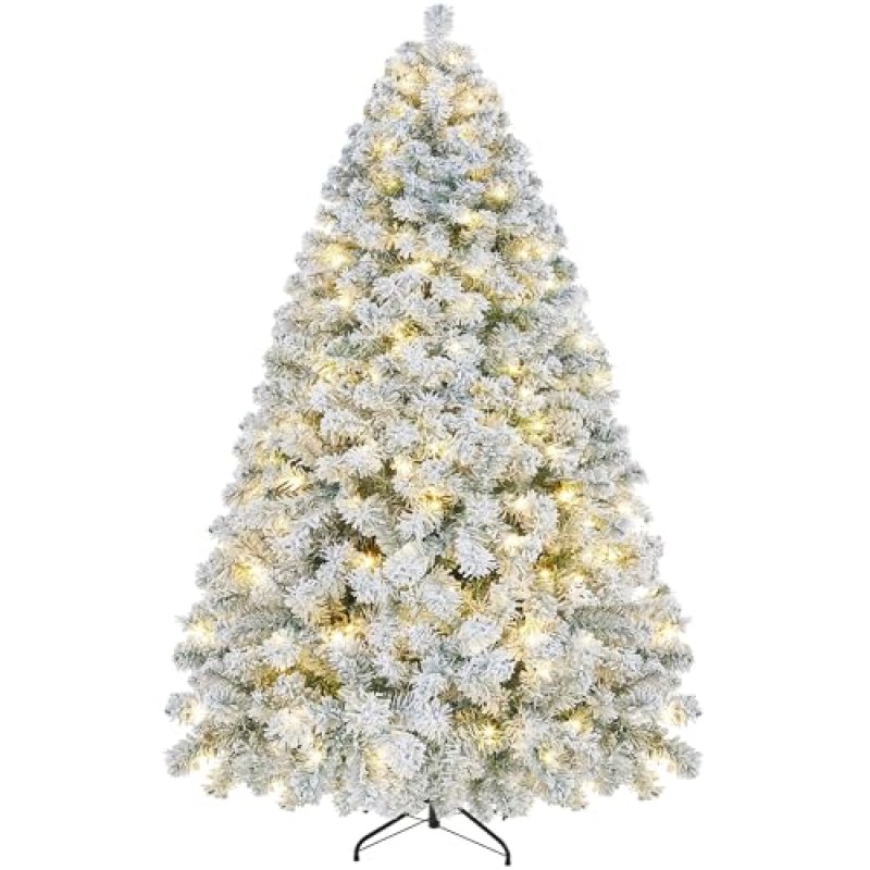 Yaheetech 7ft Pre-lit Flocked Artificial Christmas Tree