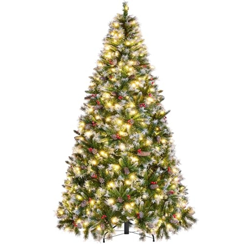 Yaheetech Pre-Lit Christmas Tree with Pinecones and Holly Berries
