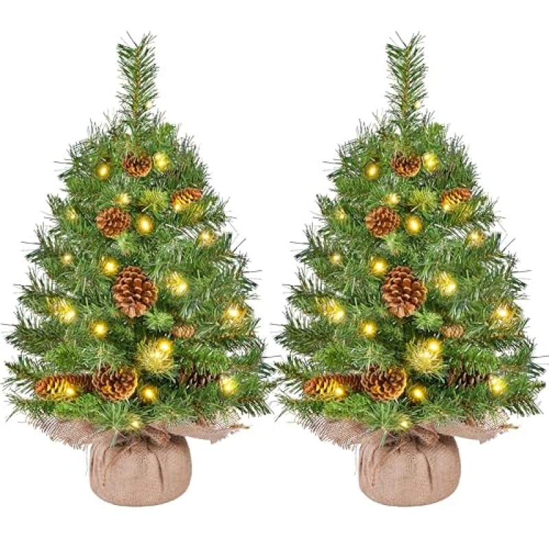 Yaheetech Pre-Lit Mini Christmas Tree with Pinecones and LED Lights