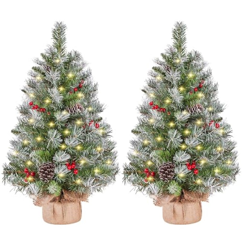 Yaheetech Pre-Lit Mini Tabletop Christmas Trees, Set of 2