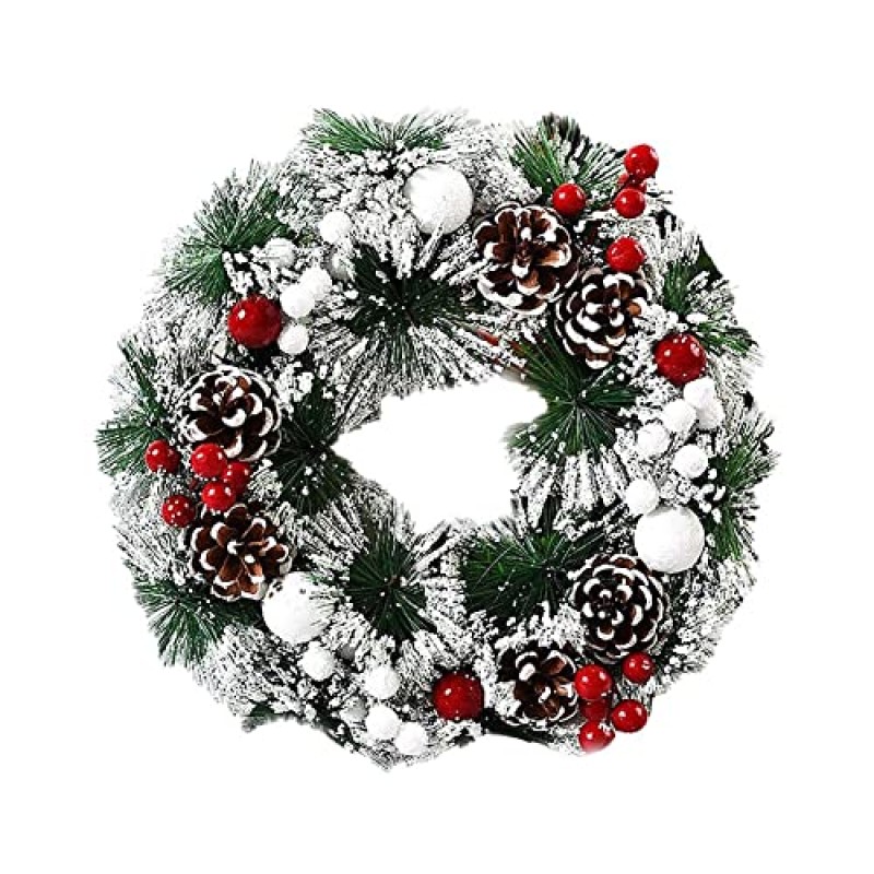 YAOJIWANG 40cm Christmas Wreath with Red Glitter Finish