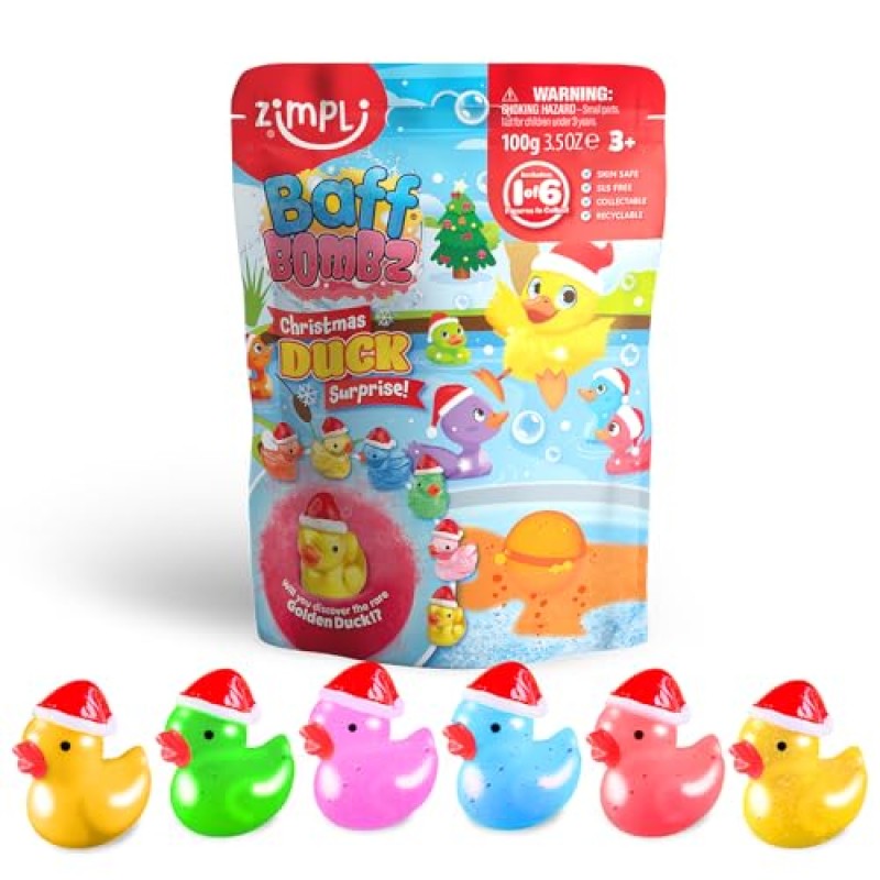 Transform bath time into a magical festive adventure with the Zimpli Christmas Duck Surprise Bath Bomb. As the bath bomb fizzes and dissolves, it colours the water with vibrant hues, creating a joyful spectacle for little ones to enjoy. Hidden within the fizzing fun, a charming Christmas Duck collectible toy awaits, adding an element of surprise and delight to the experience. With six enchanting figures to collect, children can look forward to discovering the rare ones, sparking excitement throughout the holiday season.